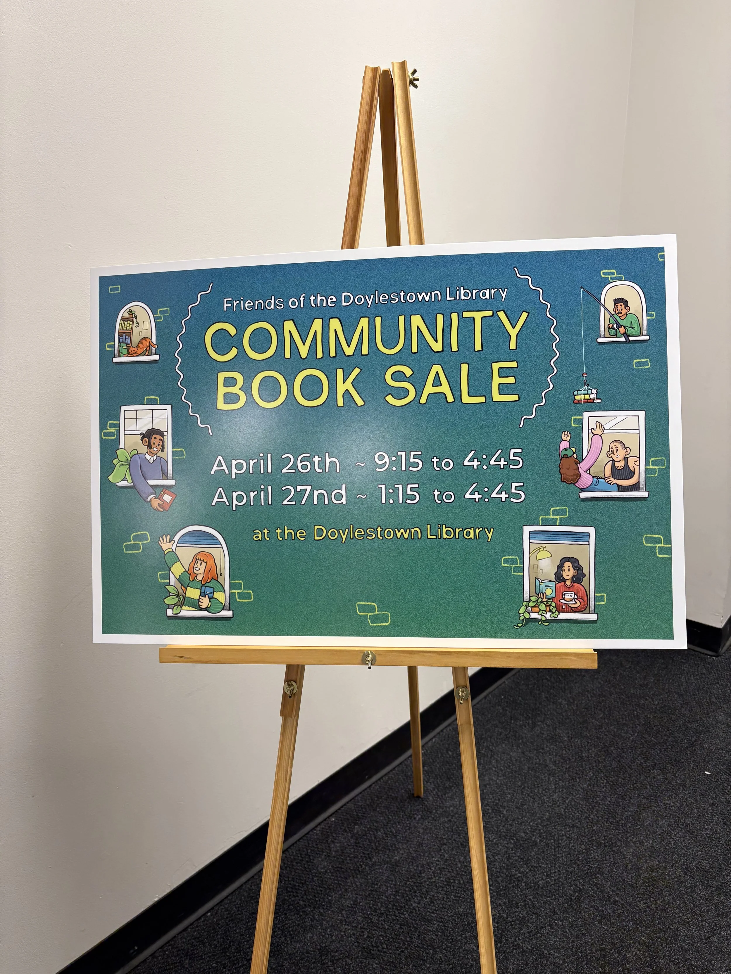 Print and digital advertisements for the Doylestown Library Community book sale. I had a ton of fun with these spot illustrations so I hope you’re feeling inspired to pick up a book!